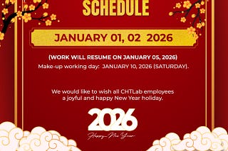In celebration of the New Year 2026, we are pleased to announce the holiday schedule as follows: